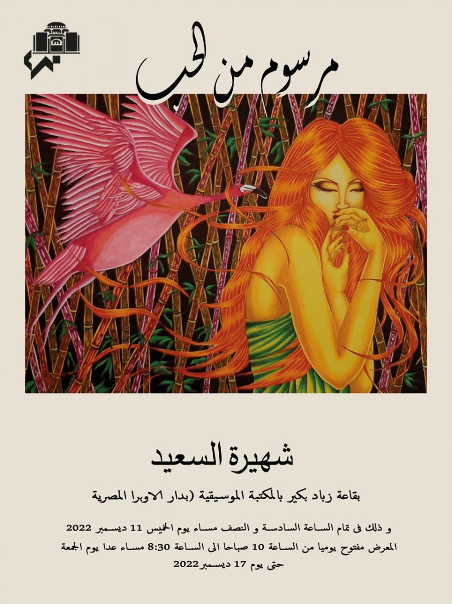 يستعد الدكتور مجدي صابر، رئيس دار الاوبرا المصرية، لإفتتاح معرض بعنوان "مرسوم من الحب" للفنانة شهيرة السعيد، في السادسه والنصف مساء اليوم الأحد ويستمر حتي السبت 17 ديسمبر بقاعة زياد بكير