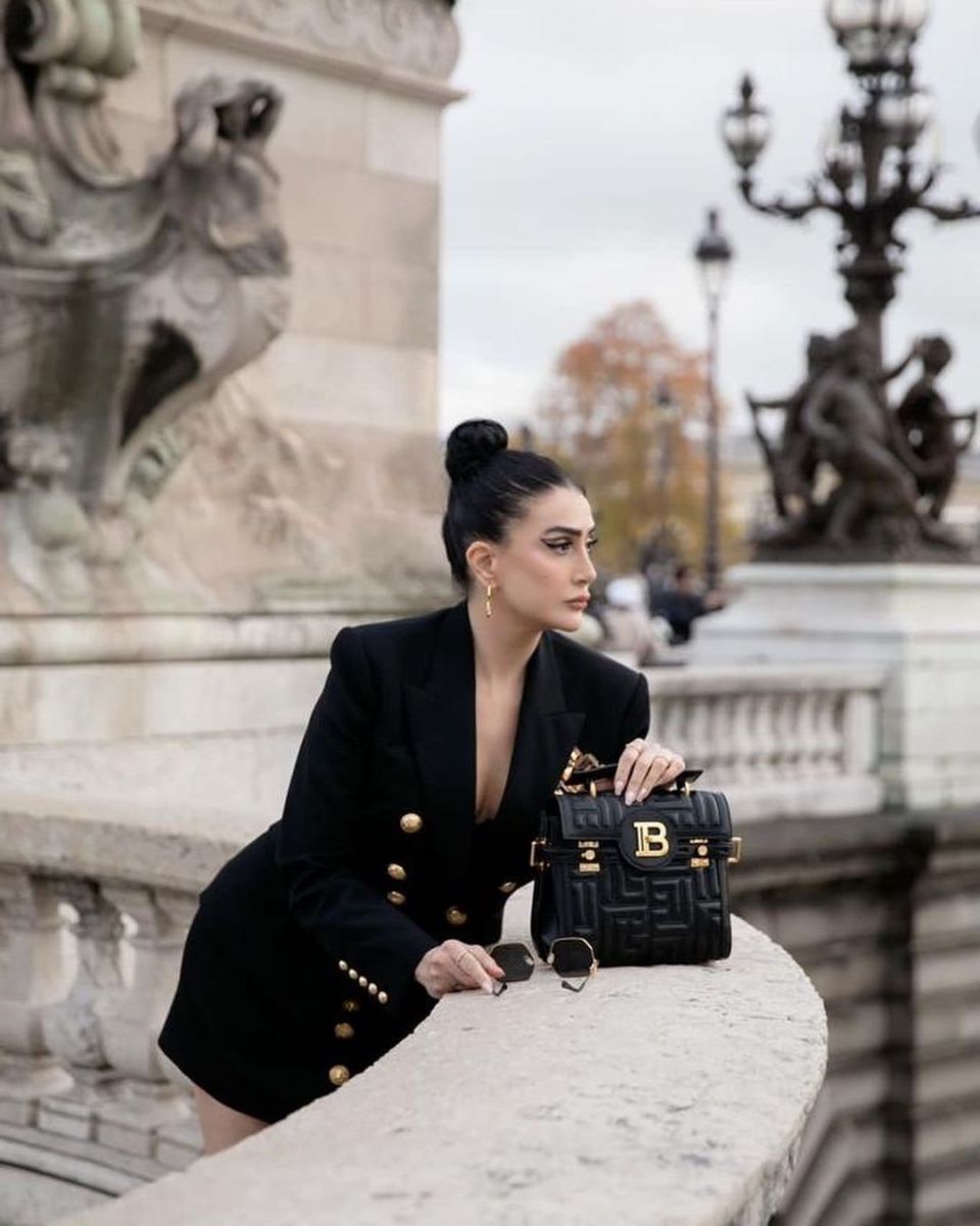 تألقت غادة بإطلالة مثيرة ولافتة للأنظار، باللون الأسود، إذ ارتدت فستانًا فخمًا قصيرًا أعلى الركبة وذا أكمام طويلة، مزودًا بتطريزات وأزرار ذهبية أنيقة، فيما انتعلت حذاء ذا كعب عالٍ بنفس لون الفستان، وحملت حقيبة يد أنيقة صغيرة الحجم، مما أبرز أنوثتها الطاغية ورشاقة قوامها الممشوق.