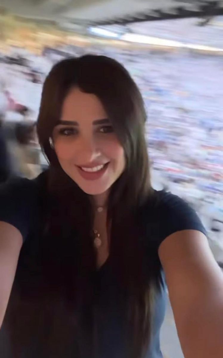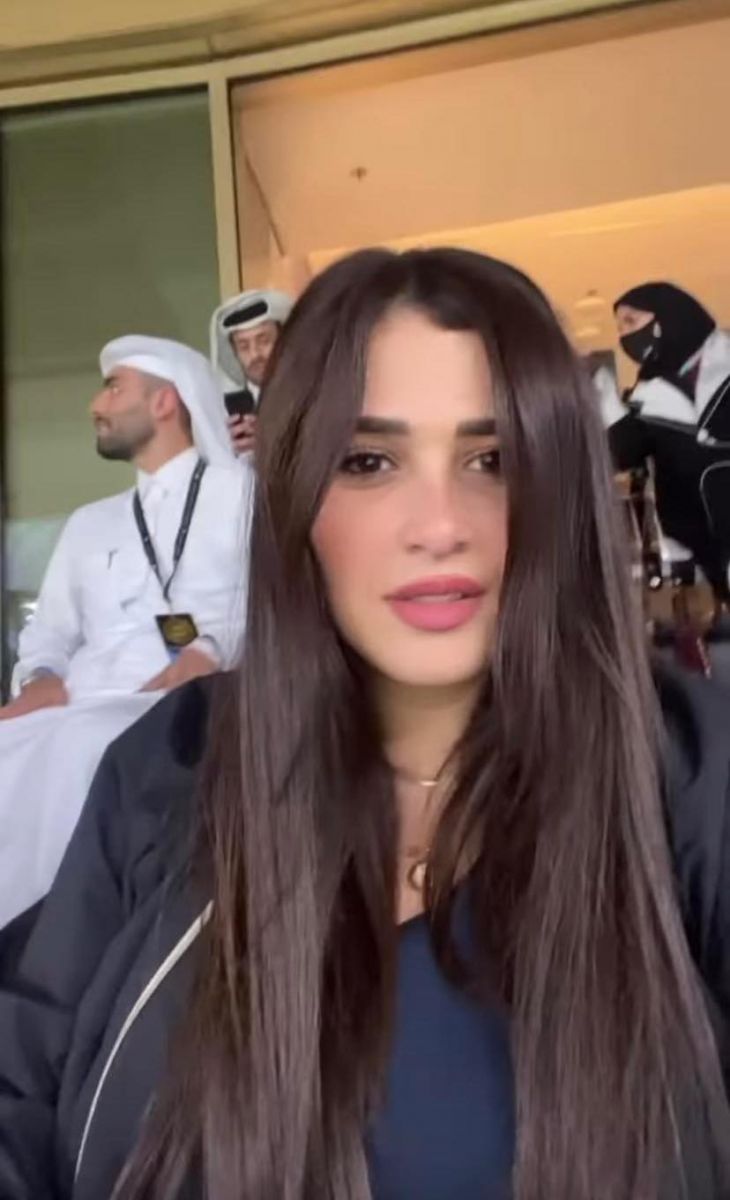وظهرت ياسمين وهي تلتقط "سيلفي" مع إحدى صديقاتها أعلى مدرجات استاد لوسيل، وبدت بإطلالة أنيقة وجذابة، حيث ارتدت تيشيرت ذا أكمام قصيرة باللون الأسود، ونسقت عليه كارديجان طويل وفضفاض بنفس اللون، مما أبرز أنوثتها وقوامها الممشوق.