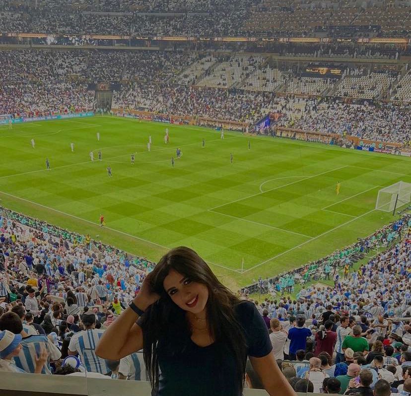 شاركت الفنانة ياسمين عبد العزيز جمهورها بمقطع فيديو وصور من أحدث ظهور لها داخل استاد لوسيل أثناء حضورها مباراة الأرجنتين وفرنسا، ضمن فعاليات نهائي كأس العالم 2022، وذلك من خلال خاصية القصص المصورة "ستوري" عبر حسابها الشخصي بموقع تبادل الصور والفيديوهات "إنستجرام".