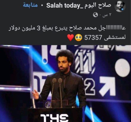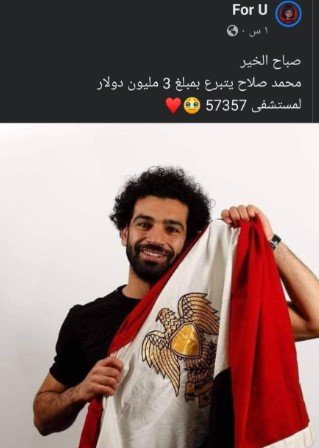 تداول عدد من رواد السوشيال ميديا أنباءً عدة تُفيد تبرع محمد صلاح بمبلغ 3 ملايين دولار ما يعادل 72 مليون جنيه، لصالح مستشفى 57357 لعلاج سرطان