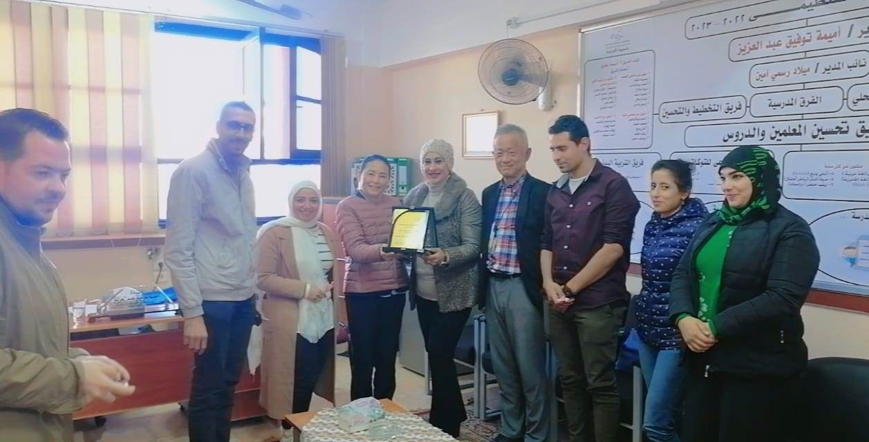 حيث استقبلت أميمة توفيق مديرة المدرسة المصرية اليابانية بأسيوط الجديدة ؛ الخبير الياباني سويز سينسيه موتسومي ومترجمه الخاص أمير سينسيه خلال زيارته وتفقده للفصول الدراسية للمدرسة للاطمئنان على المستوي الأكاديمي للطلاب ومتابعة مستوى المعلمين مهنيا وذلك ضمن خطة الدولة والتعاون المصري الياباني في مجال التعليم.