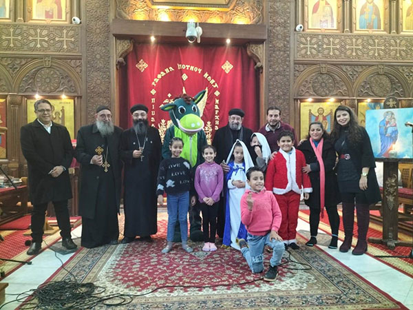 استهل الاحتفال الذي أشرف على تنظيمه خدام التربية الكنسية، صلاة عشية، وبعدها قاد القس رافائيل تكلا شعب الكنيسة في صلاة قصيرة بمناسبة نهاية العام وبداية سنة جديدة، وقدمت الطفلة ساندي سامي مجموعة من الترانيم الخاصة بميلاد السيد المسيح.