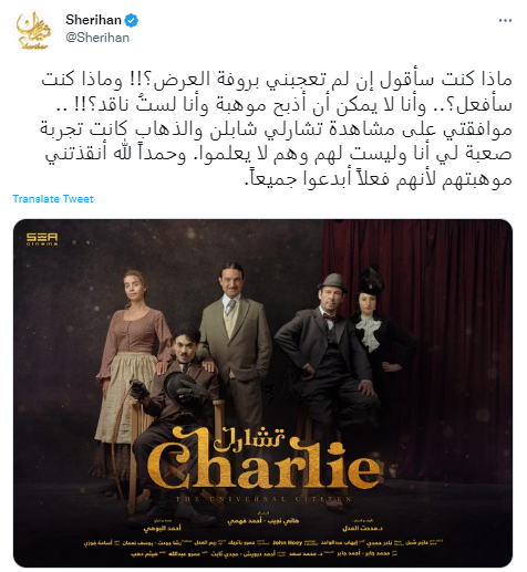 وقد حرصت الفنانة شريهان على مشاركة جمهورها ومتابعيها بوستر مسرحية "تشارلي" عبر حسابها الرسمي على موقع التدوينات القصيرة "تويتر" مرفقًا بتعليق: "ماذا كنت سأقول إن لم تعجبني بروفة العرض".