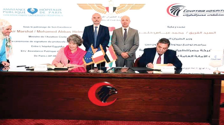 وقعت شركة مصر للطيران للخدمات الطبية بروتوكولا للتعاون مع الهيئة العامة لمستشفيات باريس والتى تضم 39 مستشفى فى فرنسا.. ويهدف البروتوكول إلى تعزيز التعاون بين الجانبين فى مجال تقديم الخدمات الطبية والعلاجية وتبادل الخبرات والتدريب بما يكفل تقديم خدمة صحية متكاملة ومتميزة للعاملين بقطاع الطيران.. يأتى ذلك فى ضوء استراتيجية وزارة الطيران المدنى نحو تطوير المنظومة الصحية وتقديم أعلى مستوى من الخدمات الطبية والعلاجية لجميع العاملين واسرهم وأصحاب المعاشات بقطاع الطيران.