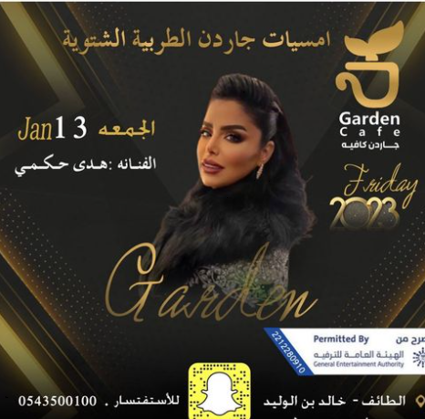 ومن المقرر أن يقام الحفل الليلة، داخل إحدى الكافيهات الشهيرة بمدينة الطائف، برعاية الهيئة العامة للترفيه.