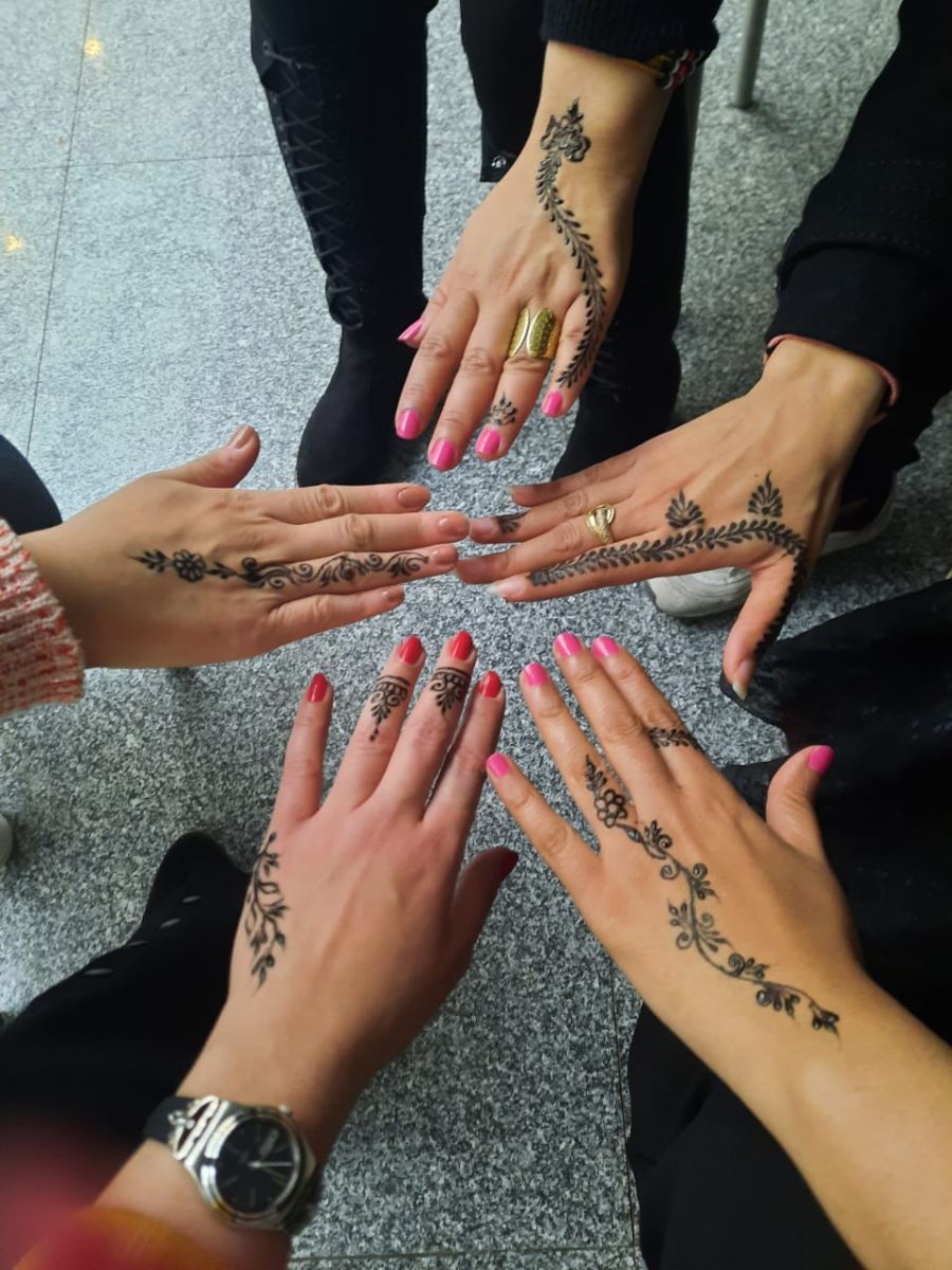 وقد أعرب زوار المتحف من السيدات والفتيات من جميع الجنسيات، سعادتهم بالمشاركة في الورش الفنية و التفاعل معها برسم الحنة على أيديهن بأشكال مستمدة من فنون التراث المصري.