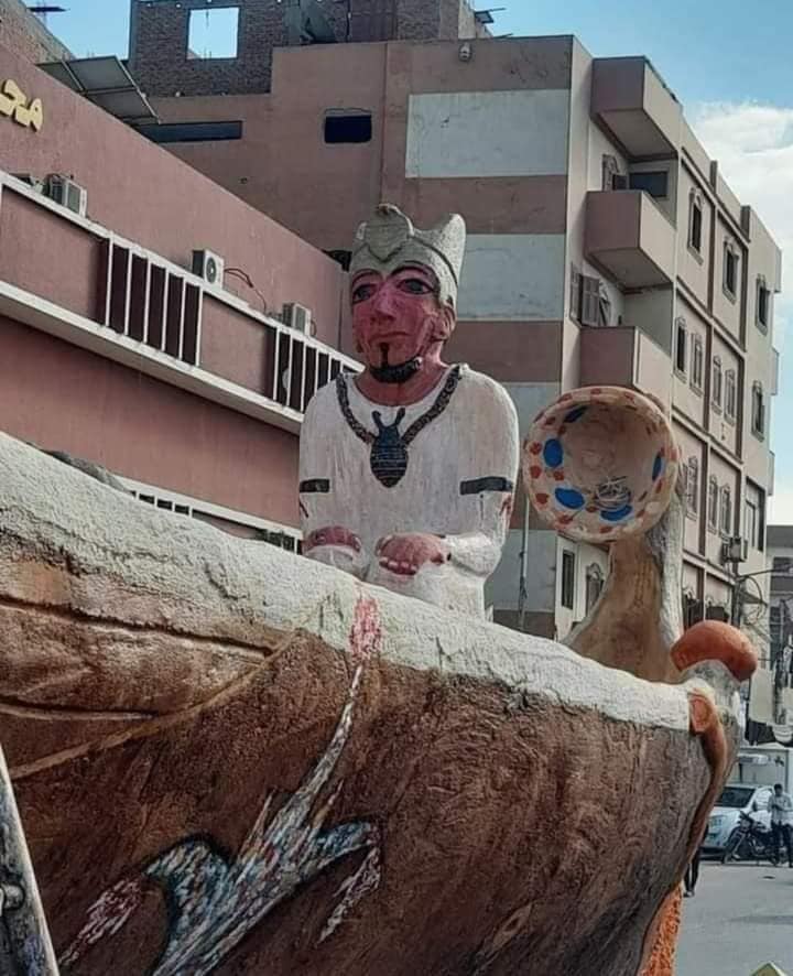 أثار تمثال فرعوني يتوسط مركب تم وضعه أمام مجلس مركز ومدينة أبوتيج في محافظة أسيوط سخرية المواطنين ورواد مواقع التواصل الاجتماعي بأشكالها كافة، وهو ما اضطرت معه رئاسة الوحدة المحلية بمركز ومدينة أبوتيج بإزالته.