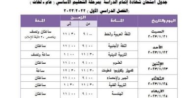 وتنشر "الوفد" جدول امتحانات الشهادة الإعدادية بمحافظة الجيزة.