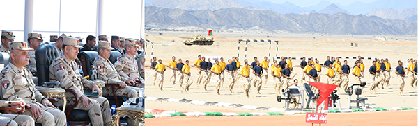 الدفاع والإنتاج الحربى، للعناصر كافة المشاركة بالبيان، مشيداً بالمستوى الراقى الذى ظهرت به العناصر كافة المنفذة للبيان، مما عكس مستوى الاستعداد القتالى العالى والاحترافية فى تنفيذ المهام، كما ناقش عدد من القادة والضباط المشاركين بالبيان فى الأسلوب الأمثل لتنفيذ الإجراءات كافة والاستفادة منها لرفع الكفاءة القتالية على المستويات كافة.
