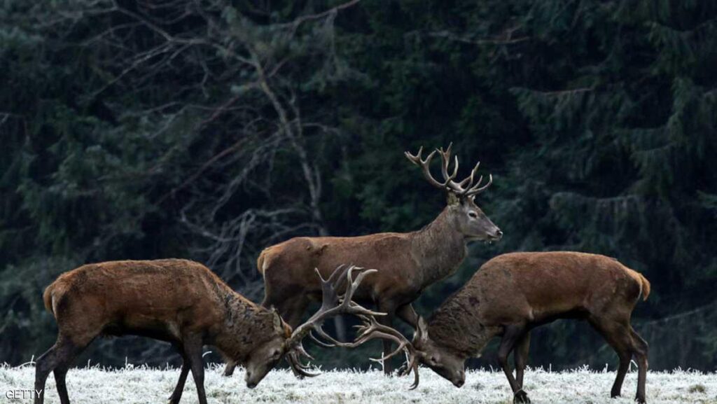 حيوان الأيل لحظة تخلُّصه من قرونه (شاهد)