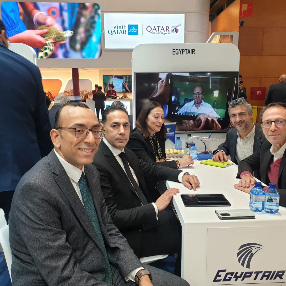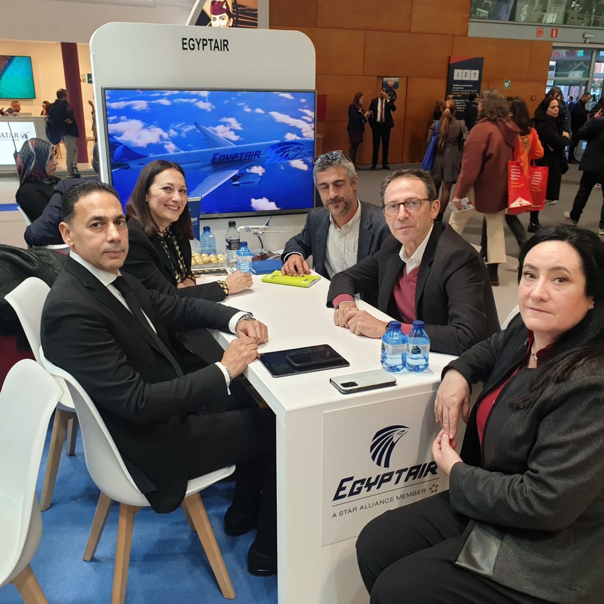 مثل مصر للطيران فى المعرض ناجى شعبان مدير إقليم مصر للطيران فى أسبانيا، وأحمد عبدالرحيم مدير مالى أسبانيا، وأحمد على مدير إدارة الرحلات الخاصة بشركة مصر للطيران للخطوط الجوية.