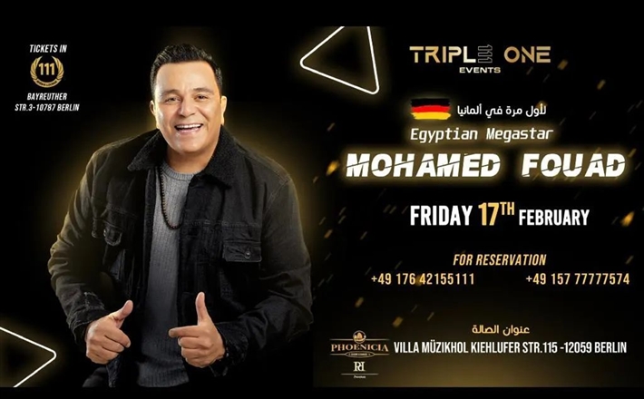 يقدم محمد فؤاد للمرة الاولى خلال مسيرته الفنية حفل غنائي جديد في ألمانيا، ضمن فعاليات الاحتفال بعيد الحب هناك.