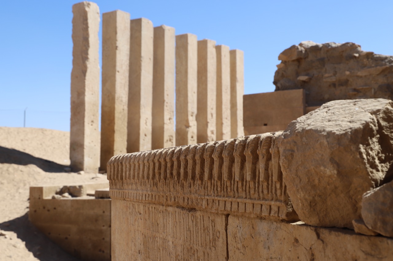 ويوجد حاليا 5 أعمدة والسادس مكسور ذات التيجان المزخرفة بالمكعبات، ويزن العمود حوالي (17) طنا و(350) كيلوغراما ويبلغ طول العمود (12) مترا وسمكه (80×60) سنتيمترا.