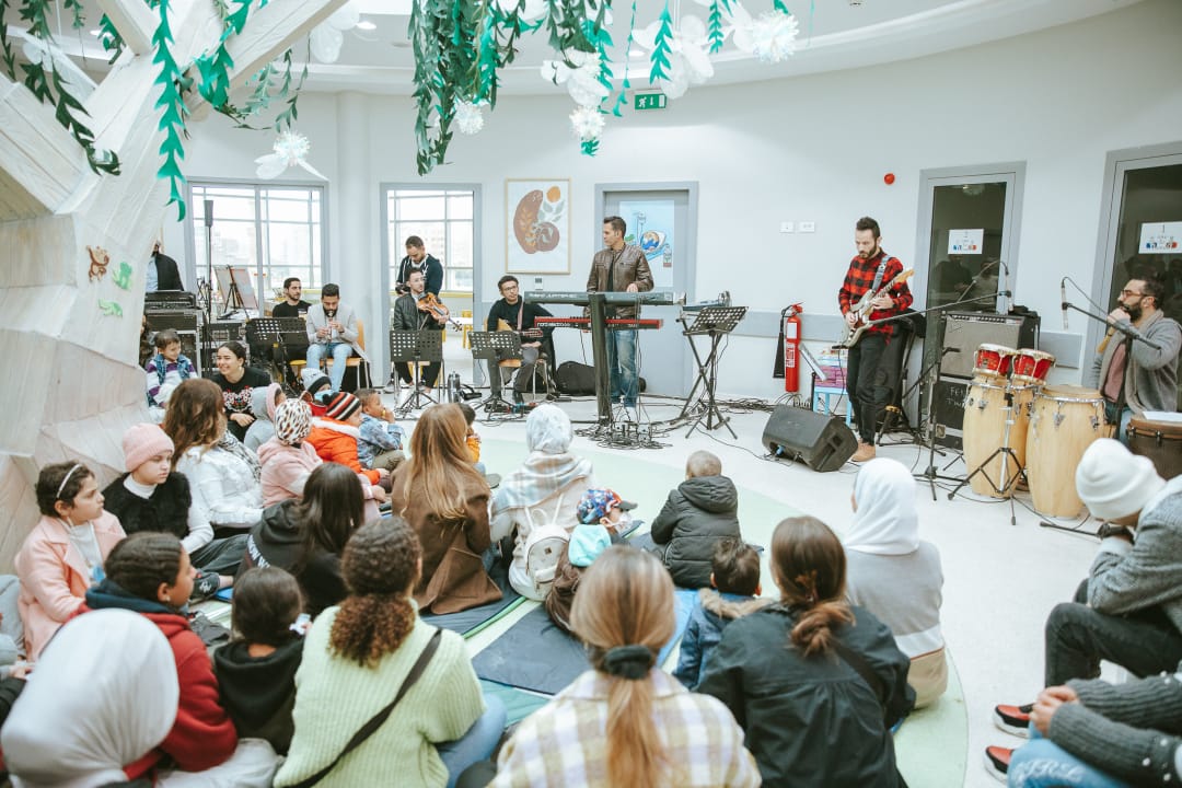 قام الموسيقار هشام خرما، بمشاركة أطفال مستشفى 57357 في تقديم جلسات الموسيقى العلاجية، أمس، الخميس.