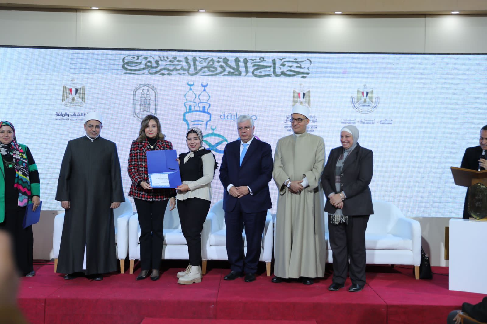 أناب الدكتور اشرف صبحي وزير الشباب والرياضة ، نجوى صلاح وكيل الوزارة ورئيس الإدارة المركزية لتنمية الشباب، لحضور حفل توزيع جوائز مسابقة "معاً" عن القيم الايجابية المصرية والاخلاق الكريمة، بحضور الدكتور  محمد أيمن عاشور - وزير التعليم العالي والبحث العلمي ، الدكتورة  نيفين الكيلاني - وزيرة  الثقافة، الدكتور  نظير عياد الامين العام لمجمع البحوث الإسلامية نيابة عن شيخ الأزهر، الدكتور سلامة داود، رئيس جامعة الازهر ، ووفداً من وزارة الشباب والرياضة ضم كل من الدكتور عبد الله الباطش  مساعد الوزير للسياسات والتنمية الشبابية ، والدكتور محمد حسن معاون الوزير رئيس وحدة تصدوا معنا ، وعددا من قيادات وزارة الثقافة والتعليم العالي ، والازهر الشريف ، وشباب مراكز الشباب وطلاب الجامعات .