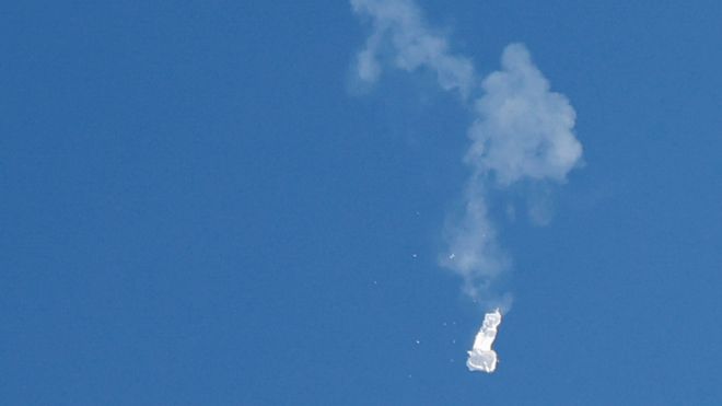 وقال مسؤولان أمريكيان، إن المنطاد أسقطته طائرة مقاتلة تابعة للقوات الجوية، وتظهر اللقطات انفجارًا طفيفًا أعقبه هبوط المنطاد نحو المياه، وشوهدت طائرات عسكرية أمريكية تحلق في المنطقة المجاورة، كما تم نشر سفن في المياه لبدء عملية انتشال الحطام.