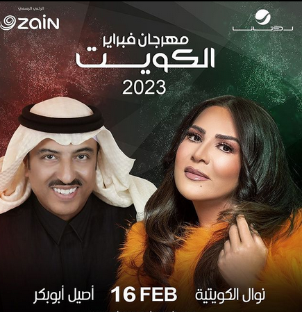 يلتقي الفنان أصيل أبو بكر والفنانة نوال الكويتية جمهورهما في حفل غنائي جديد ضمن فعاليات مهرجان فباير الكويت 2023
