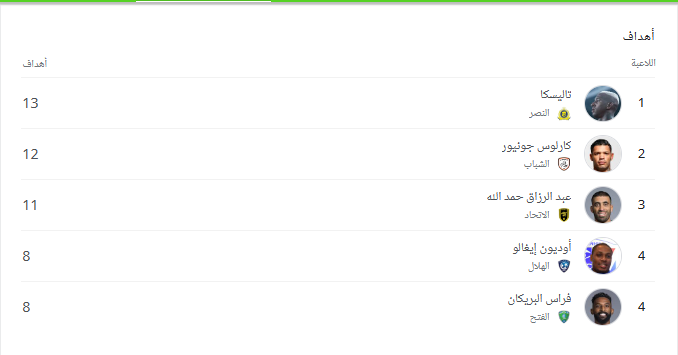كارلوس جونيور يطارد تاليكسا على صدارة هدافي الدوري السعودي