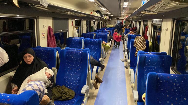 وضعت الحكومة التركية المتضررين من الزلزال في كهرمان مرعش في عربات القطار بدعم من وزارة النقل والبنية التحتية، وذلك داخل 12 عربة تم إحضارها إلى محطة قطار عثمانية، حيث يتم
