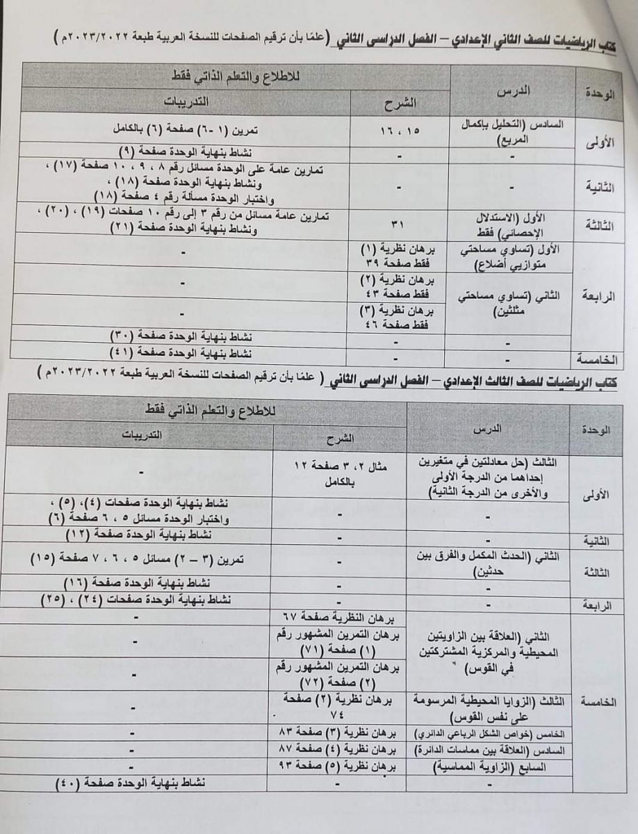 تخفيف مناهج الفصل الدراسي الثاني 2023