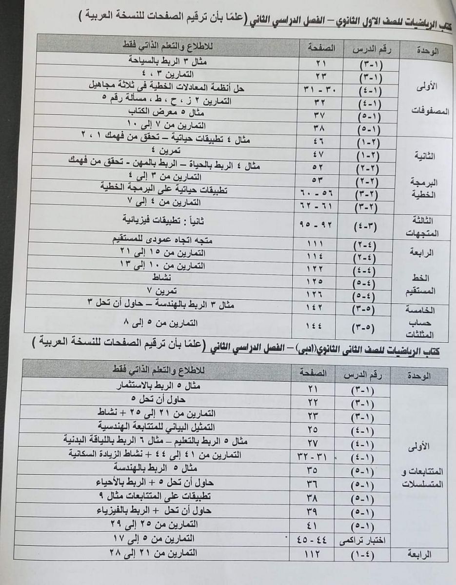 أعلنت وزارة التربية والتعليم الموضوعات المحددة للاطلاع فقط في جميع الصفوف ما عدا الصف الثالث الثانوي، لتتناسب مع تقليص مدة الفصل الدراسي الثاني.