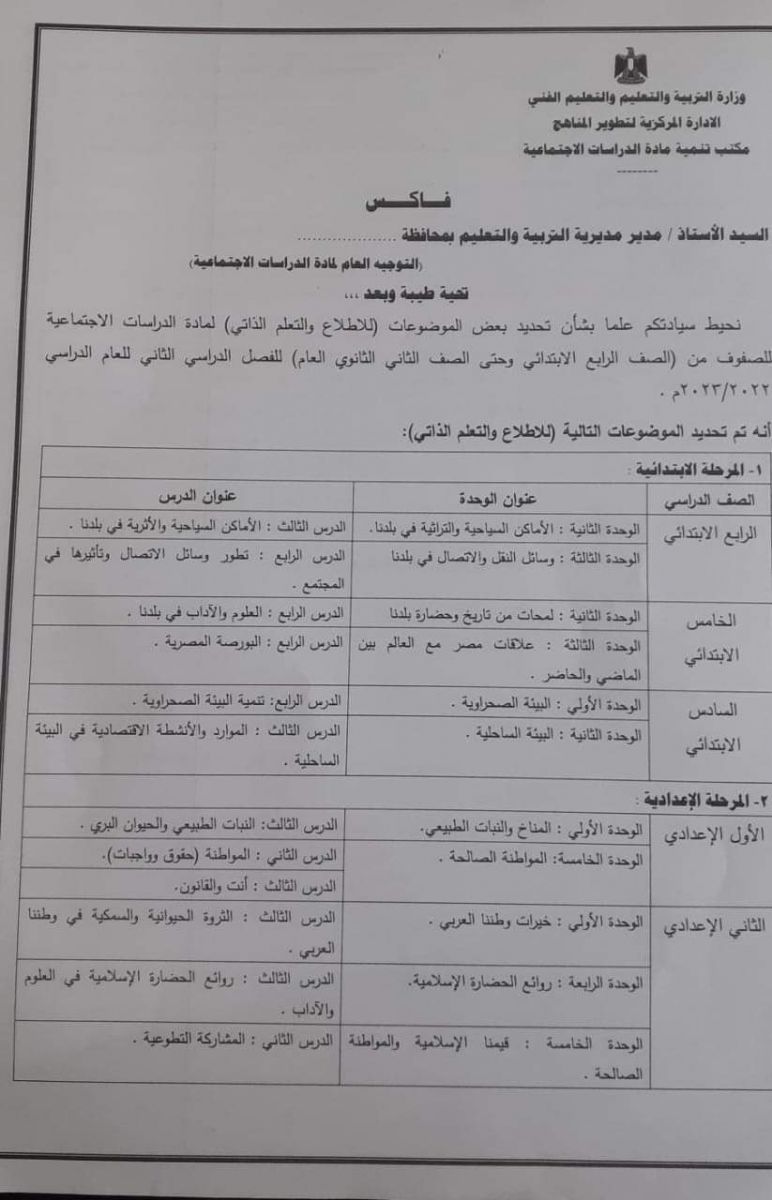 قررَّ الدكتور رضا حجازي، وزير التربية والتعليم والتعليم الفني، تخفيف المناهج الدراسية لجميع الصفوف للفصل الدراسي الثاني 2023.