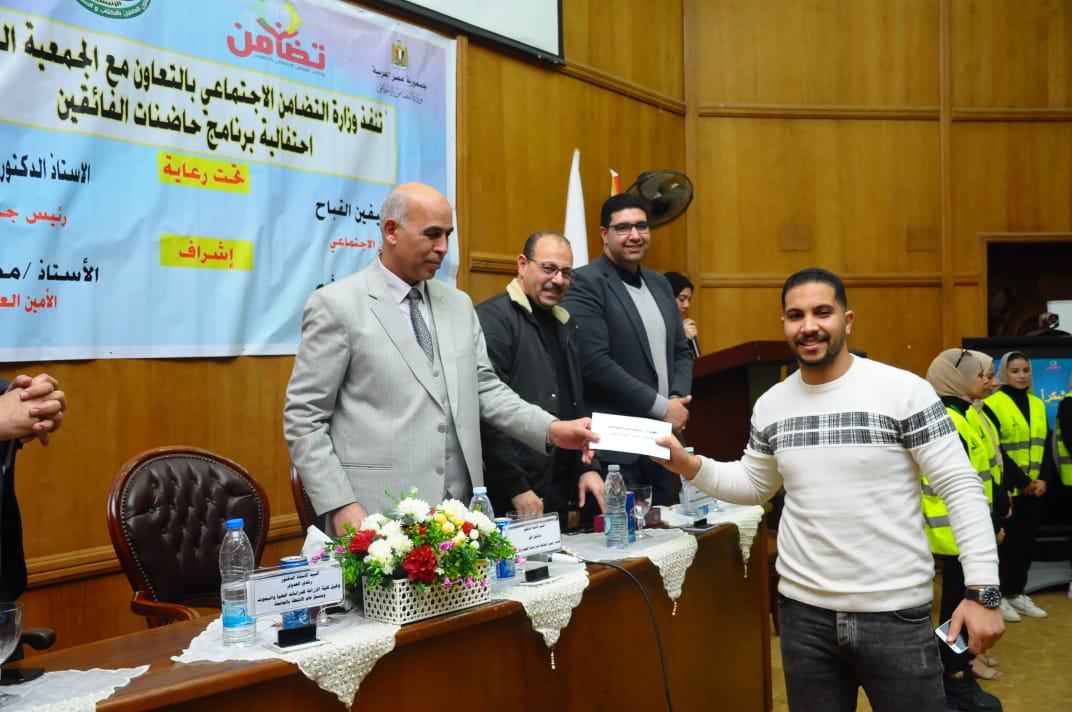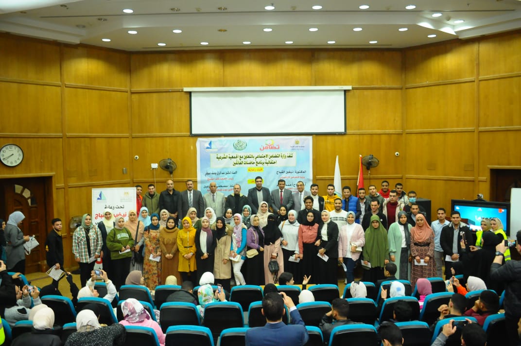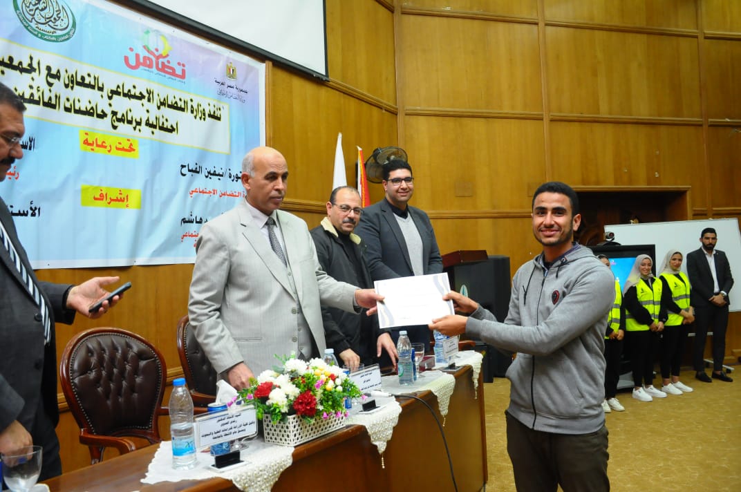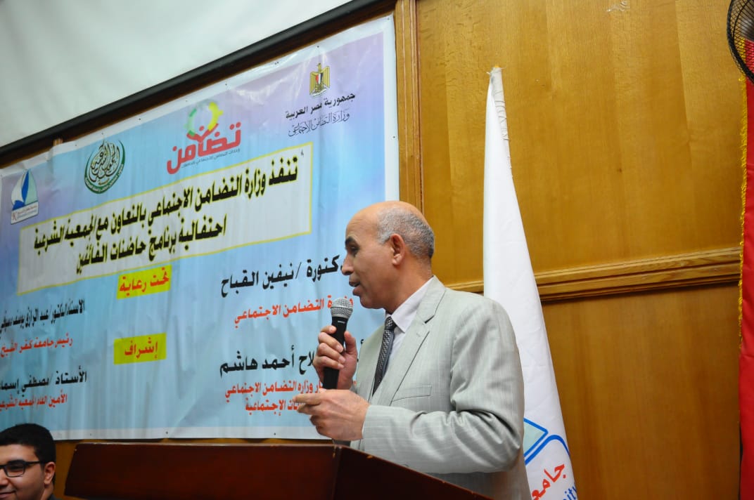 برعاية الدكتور نيفين القباج وزير التضامن الاجتماعي، و الدكتور عبدالرازق دسوقي رئيس الجامعة، كرمت وزارة التضامن الاجتماعي اليوم الإثنين، 50 طالباً وطالبة من الفائقين في كليات، الطب، الصيدلة ،العلوم، الزراعة، الذكاء الاصطناعي، الهندسة ، الألسن ،الآداب ، التربية ، التربيه النوعية ، بجامعة كفرالشيخ ضمن فعاليات برنامج "حاضنات الطلاب الفائقين"