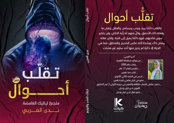 ندى عادل محمد العربي، تبلغ السابعة عشرة من عمرها، في الصف الثاني الثانوي بمدرسة عمر بن الخطاب ، تقول ندى عن كتابها الأول "تقلّب أحوال" يثير إنتباهك لعدة أسباب:
