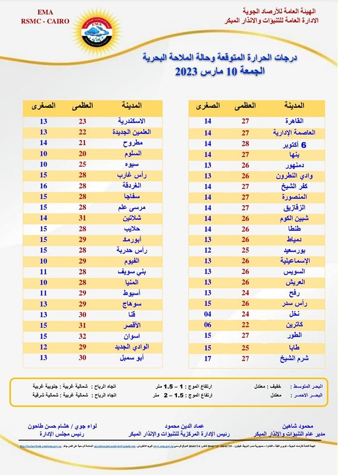 القاهرة والوجه البحري 27 العظمى - 14 الصغرى.