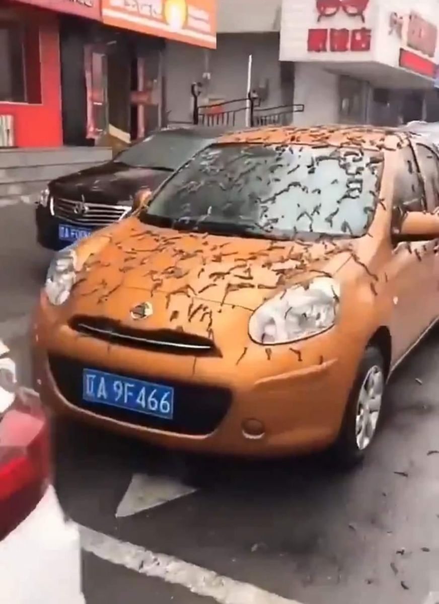 وانتشرت مقاطع الفيديو على مواقع التواصل الاجتماعي، بوجود الديدان على السيارات في الشوارع، كاتبًا البعض "سبحان الله"، ناشرًا آخر صورة لبعض المناطق في الصين، قائلًا:" جسام غريبة في الصين تثير الجدل في عاصمة بكين الصينية".
