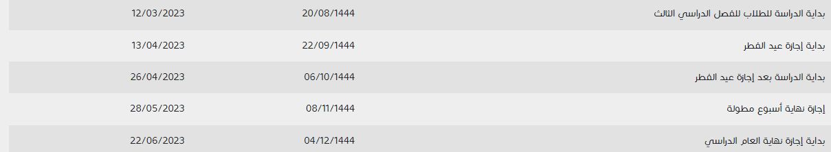 وشمل الجدول بدايته ونهايته والإجازات الرسمية التي يتخللها، إلى جانب موعد انطلاق اختبارات الفصل الثالث وكل ما هو متعلق بآخر الفصول الدراسية للعام الدراسي الجاري.