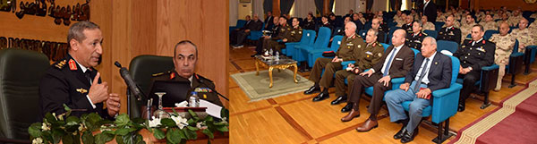 وألقى اللواء أح عبد الناصر يوسف رئيس هيئة التنظيم والإدارة للقوات المسلحة محاضرة عن طبيعة عمل الهيئة والإدارات التابعه لها وما شهدته من تطوير أنظمة العمل داخلها بما يواكب عملية التطوير والتحديث المستمر التى تتبعها القوات المسلحة .