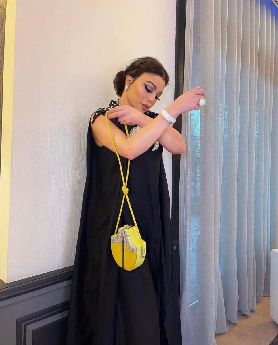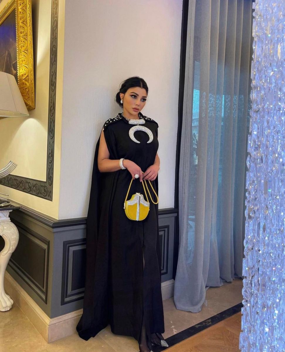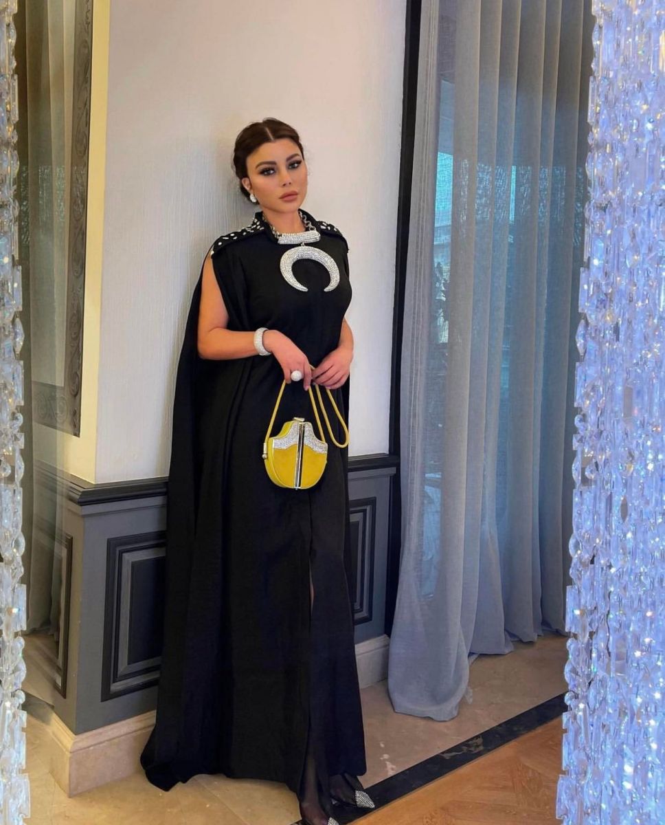 وبدت هيفاء بفستان أسود ذا أكمام مكشوفة وطويلة، وتميز بتطريزات على الأكتاف مرصعة بالفصوص الكريستالية، مما أعطى لمسه أنثوية جذابة.