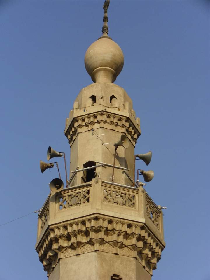 وأكد  مدير عام الآثار الإسلامية والقبطية بنجع حمادي، فى وصفه لمائذنة المسجد، أن الطابق الأول فهو مربع المسقط مصمت وخالى من الزخارف يرتفع حتى مستوى سطح المسجد تقريبا ، وبنهاية الطابق الأول نجد ارتداد عبارة عن مثلثات أفقية مرتدة عن سمت الطابق الأول فى الأركان لتحويل المسقط المربع إلى مسقط افقى .