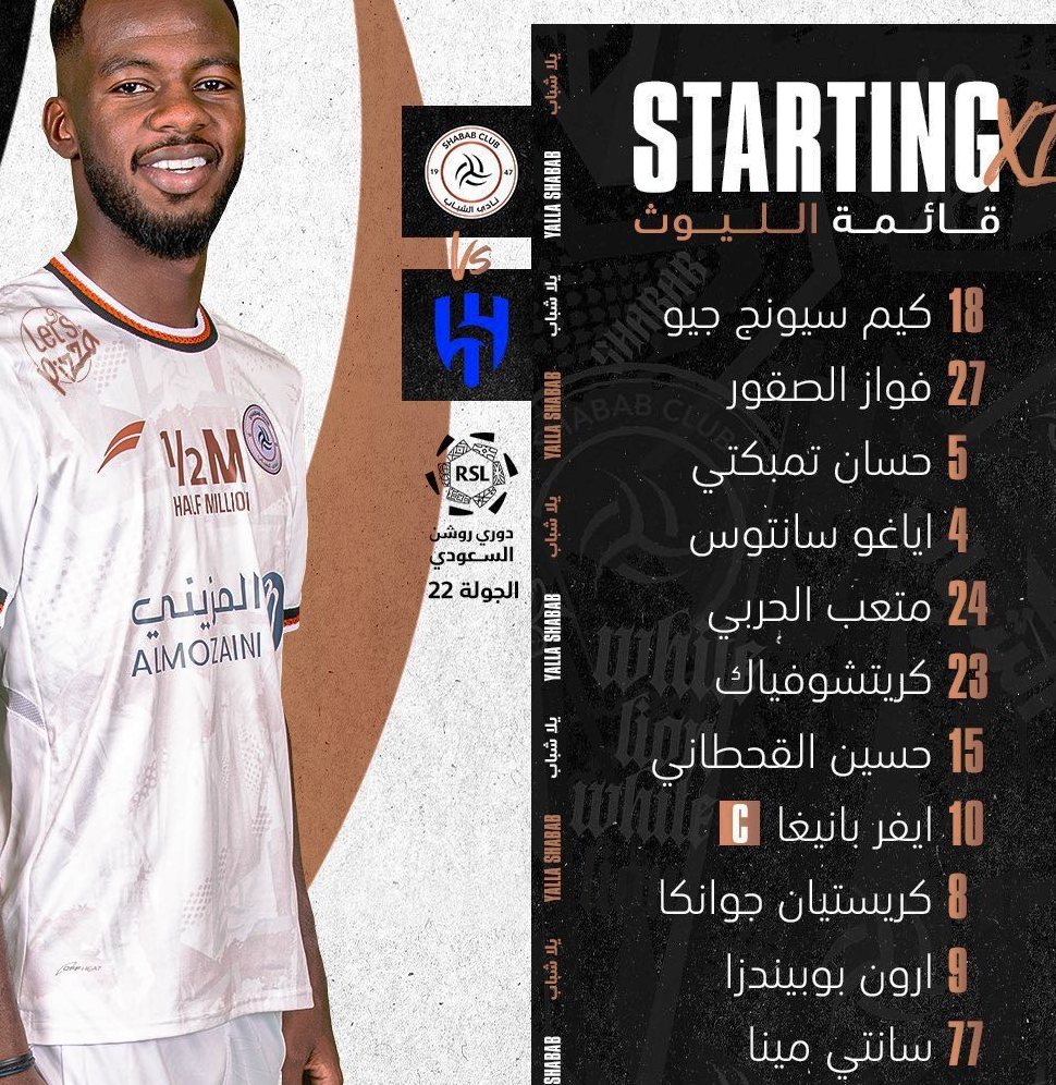 تشكيل الشباب لمباراة الهلال في الدوري السعودي: