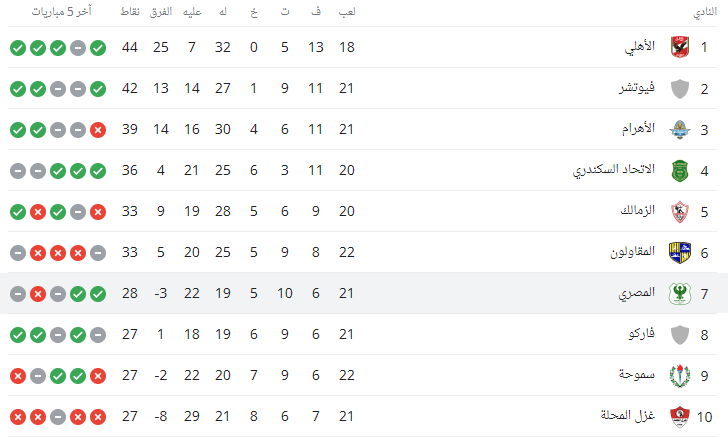 ترتيب الدوري المصري: