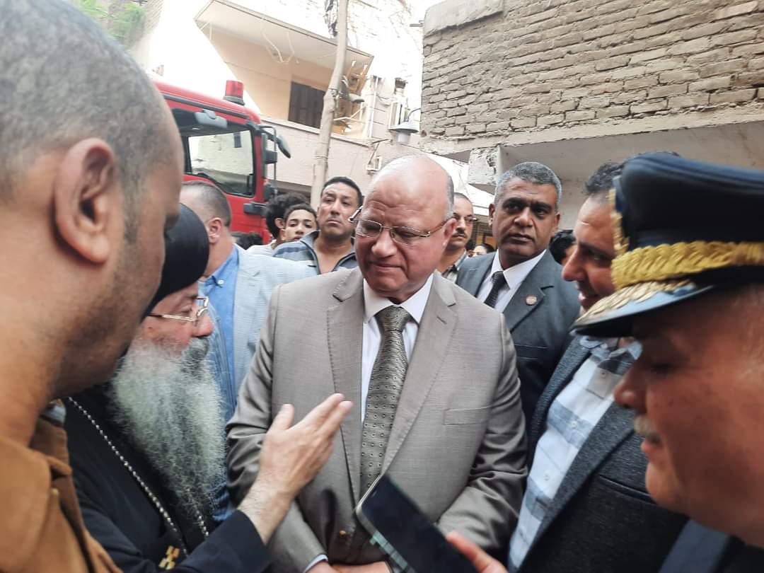 كما تفقد اللواء خالد عبدالعال محافظ القاهرة آثار حريق كنيسة الأنبا ابرام بمنطقة الزاوية الحمراء واطلع عبدالعال على جهود الاخماد، والخسائر التي