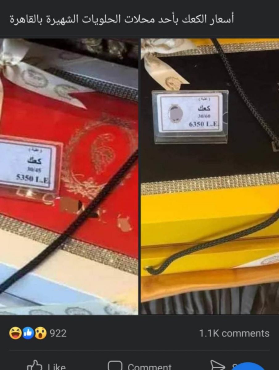 وظهر في الصورة علبة كحك تبلغ ثمنها 5 آلاف و350 جنيهًا، والثانية ثمنها 6 آلاف و350 جنيهًا، مما أثار دهشه وجدلًا واسعًا حول أعضاء