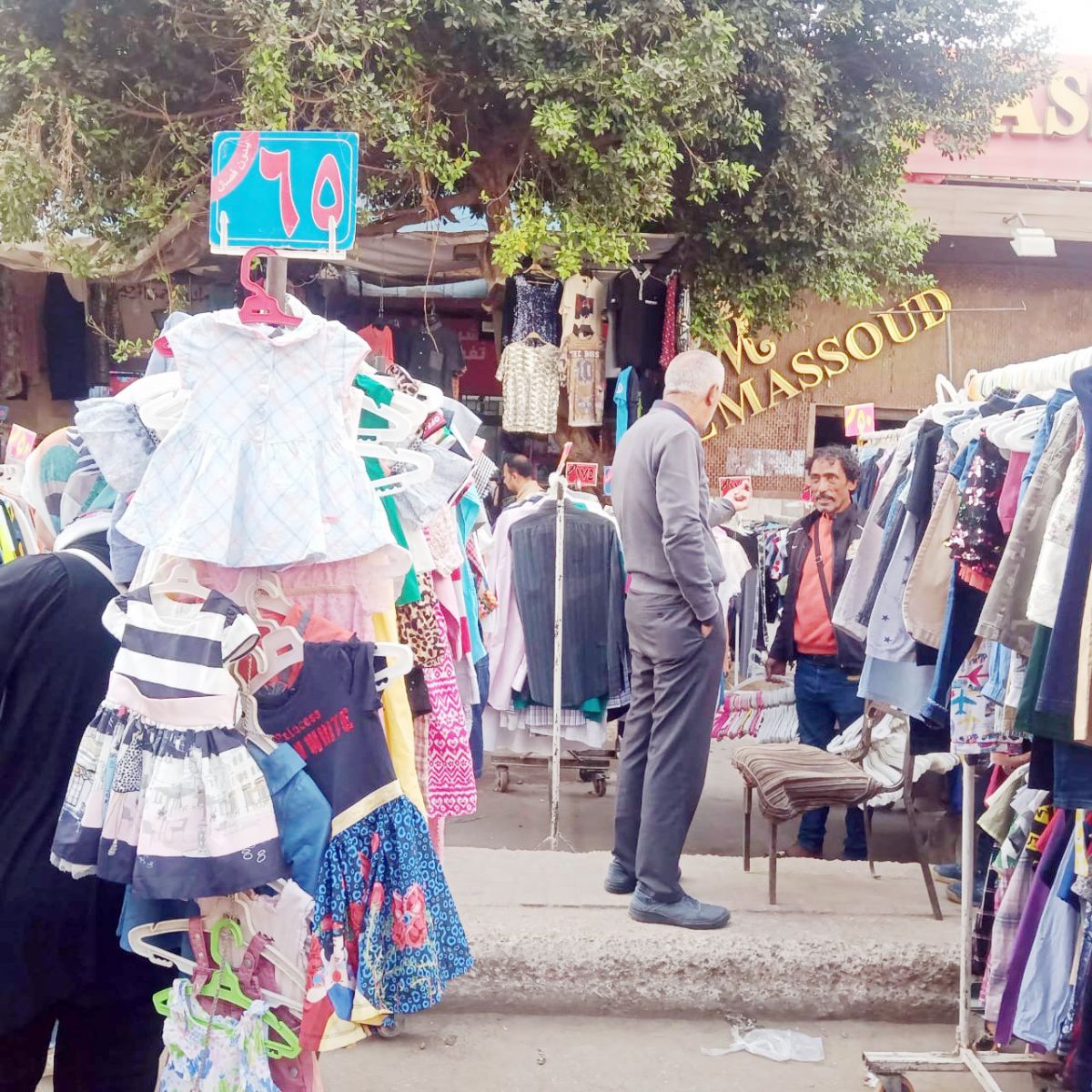 ورغم وجود عدد ليس بقليل من الزبائن إلا أن التجار يشكون من الركود وقلة إقبال الزبائن على الشراء، حيث شاهدنا بائعًا يقف وأمامه أطقم عبارة عن تى شيرت نصف كوم وشورت بألوان زاهية ومبهجة مصنوعة محليًا، تقف أمامه زبونة تفاصل فى 5 جنيهات، فرد عليها قائلًا: إحنا نستحق الصدقة مش إنك تفاصلى معايا فى طقم بـ45 جنيهًا.