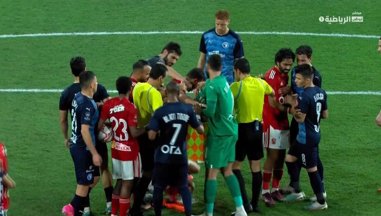 نشبت مشادة بين لاعبي الاهلى وبيراميدز في مباراة السوبر المصري بعد احراز المارد الاحمر هدف التقدم عن طريق على معلول من ضربة جزاء، ليسكنها فى شباك الأخير، لتشتعل الاجواء بين اللاعبين داخل المستطيل الاخضر لتنتج عنها اشتباكات بالايدي بين لاعبي الفريقين.
