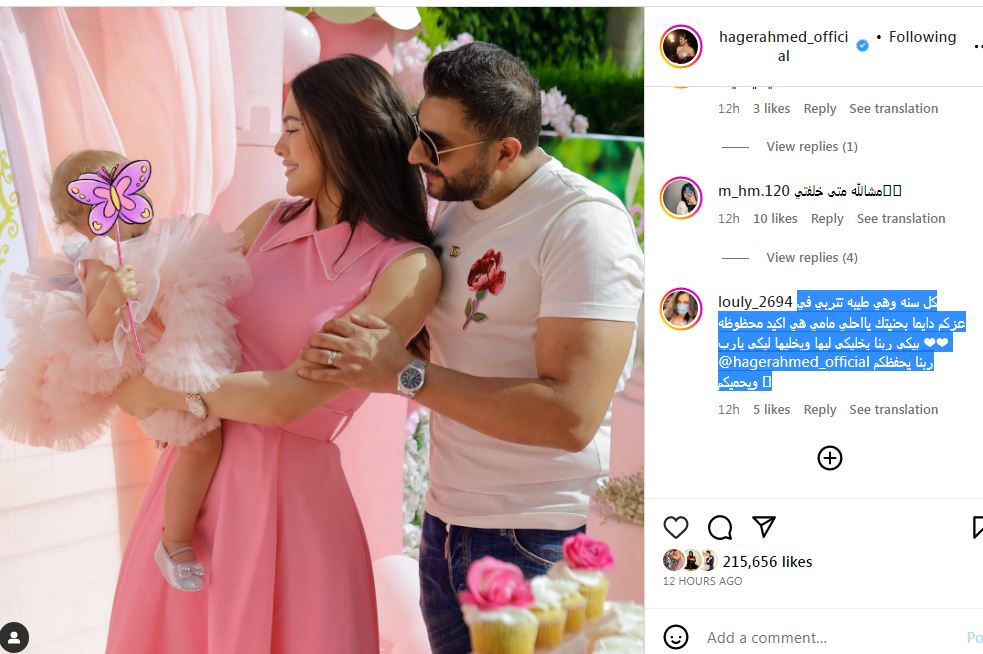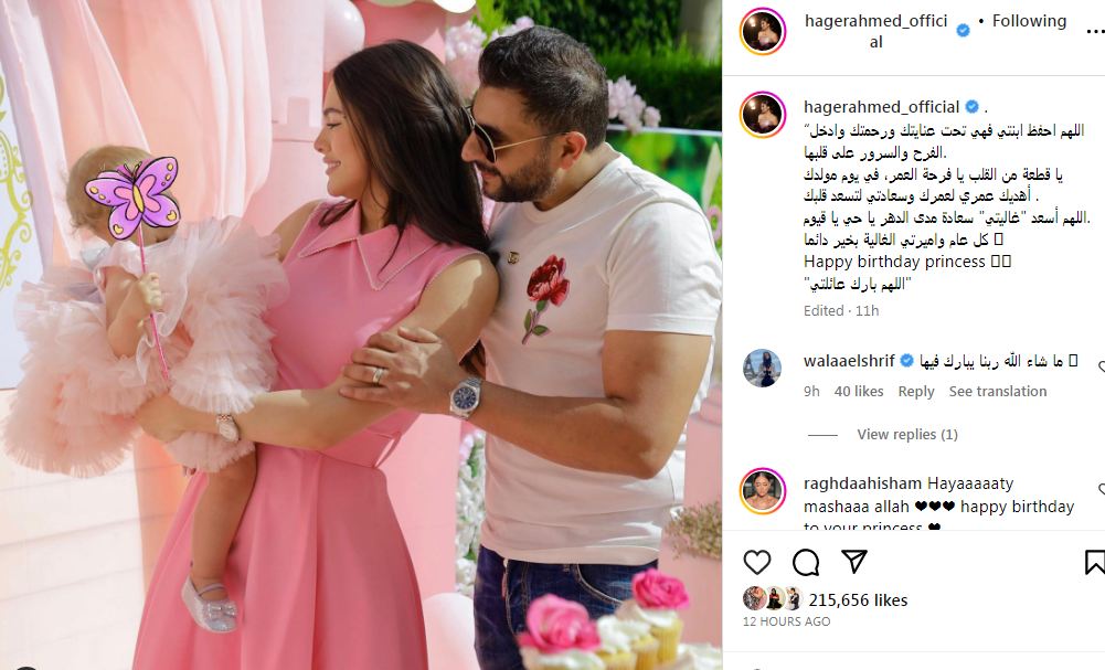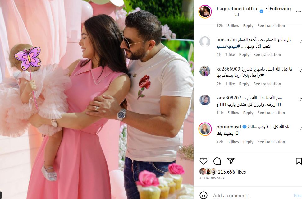 شاركت الفنانة هاجر أحمد متابعيها بأحدث إطلالتها برفقة زوجها وابنتها الصغيره، لتهنئ ابنتها بعيد ميلادها وذلك عبر حسابها الشخصي بموقع تبادل الفيديوهات والصور الأشهر إنستجرام.