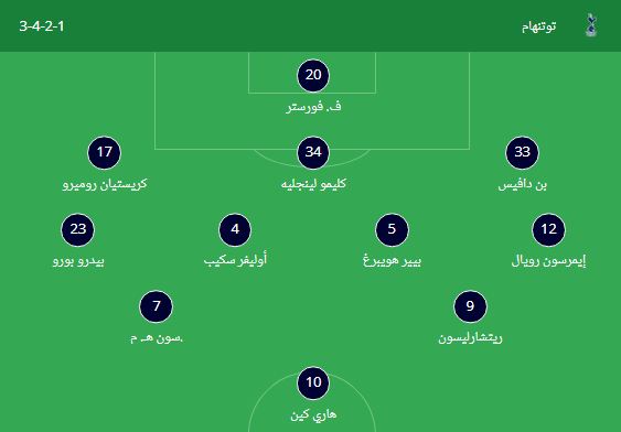 الهجوم: ريتشارلسون، سون، هاري كين.