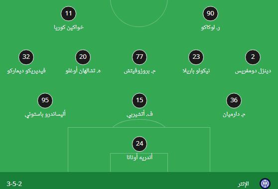 الوسط: دومفريس، باريلا، بروزوفيتش، أوغلو، ديماركو.