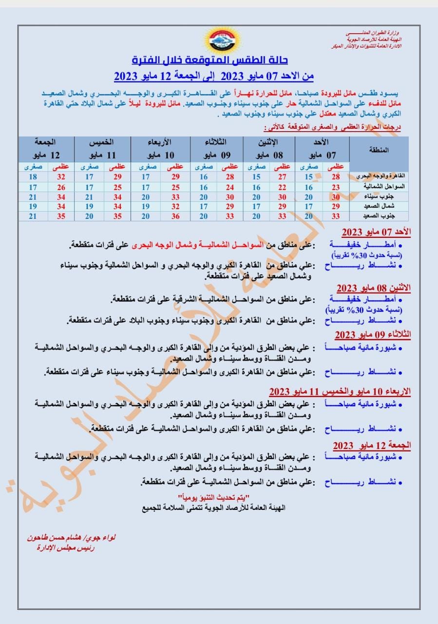 الأرصاد الجوية الجمعة الموافق 12 مايو: