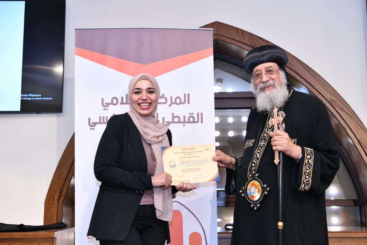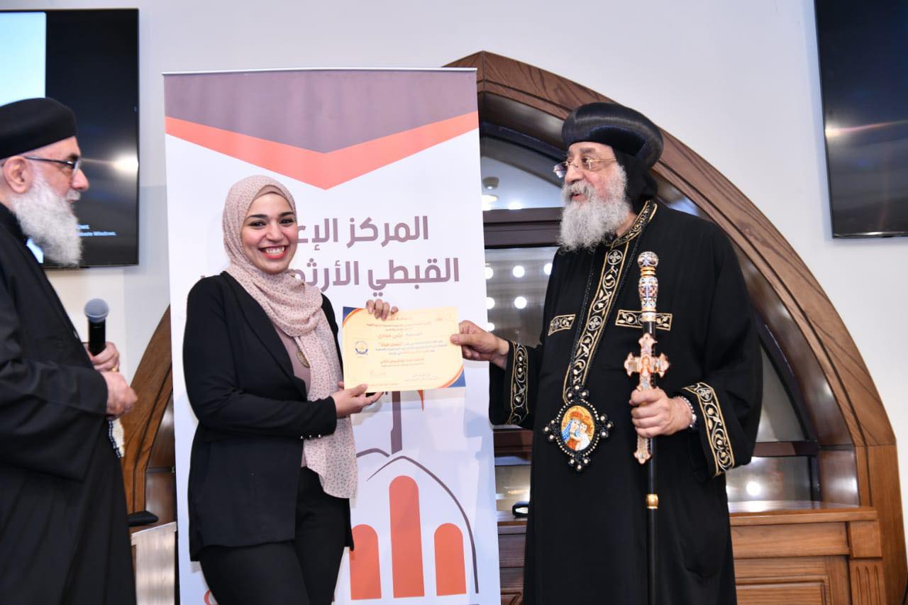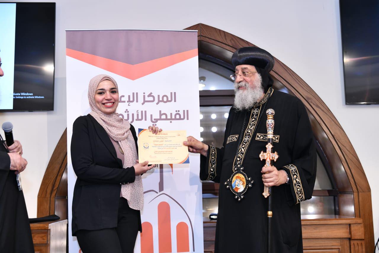 البابا تواضروس يُكرم لُچين مجدي الصحفية بالوفد خلال فعالية "نعمل سويًا"