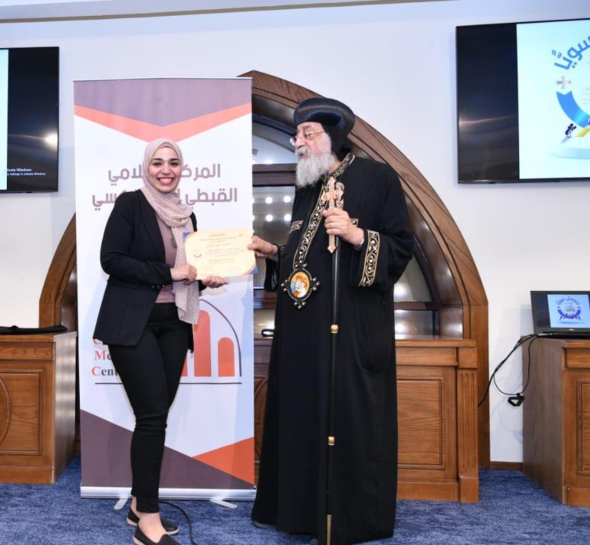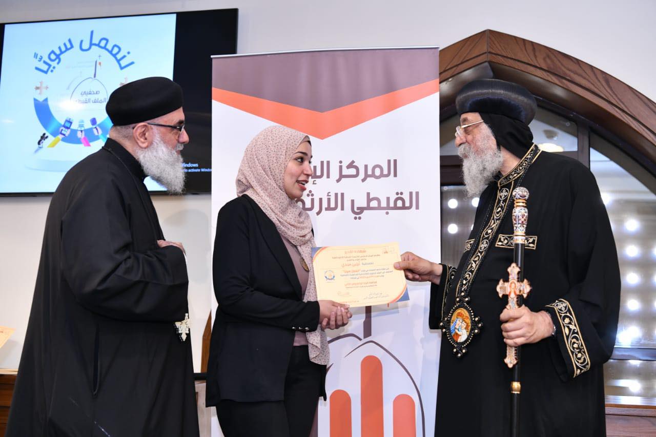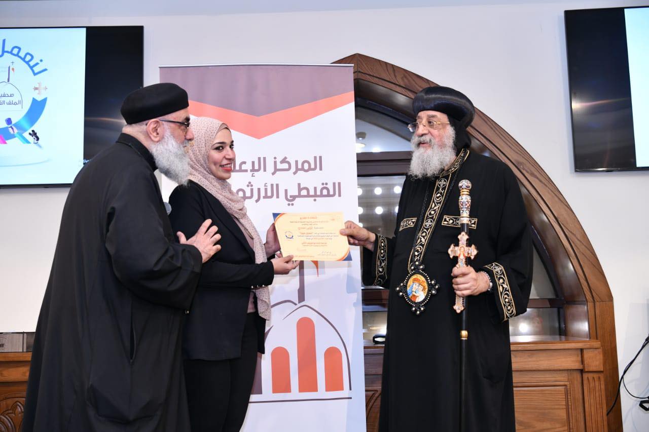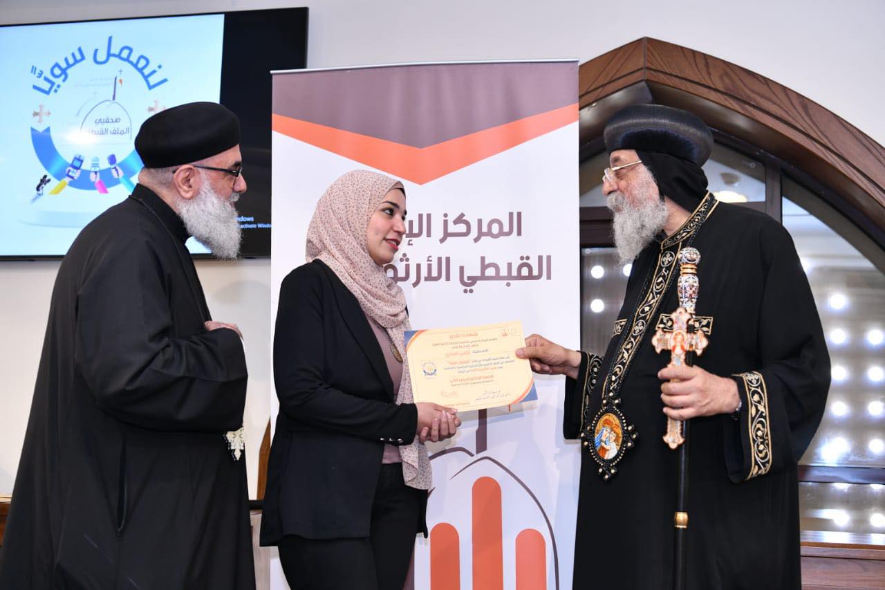 البابا تواضروس يُكرم لُچين مجدي الصحفية بالوفد خلال فعالية "نعمل سويًا"