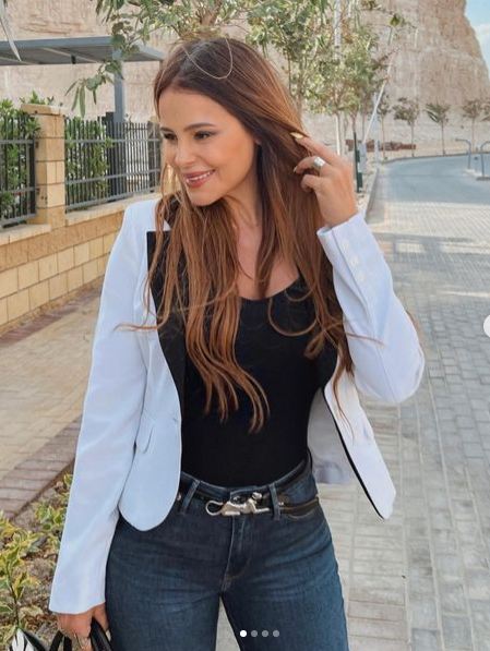 خطفت كارول سماحة الأضواء بإطلالة "كاجوال" جذابة وساحرة، مرتدية بنطال جينز باللون "الأزرق" ونسقت معه بليزر أبيض وتوب أسود، مصمم من قماش بدون نقاشات، أكملت اللوك بشنطة وحذاء أسود، مما أبرز جمالها وقوامها الممشوق.