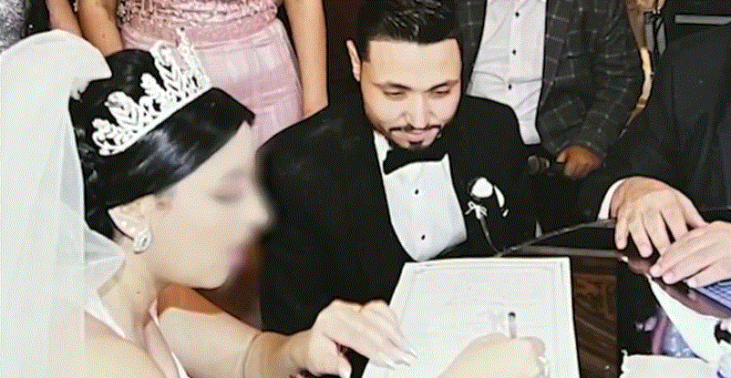 واستكمل حديثه: "حاول أتواصل مع والدها وبعت له رسالة عشان يتنازلوا عن القضايا، قالي أعلى ما في خيلك اركبه، ومضوني على إيصالات بالمؤخر"، ثم قام بعرض مجموعة صور لمحادثات بينه وبين والدها وصور أيضًا قسيمة الزواج والزفاف.