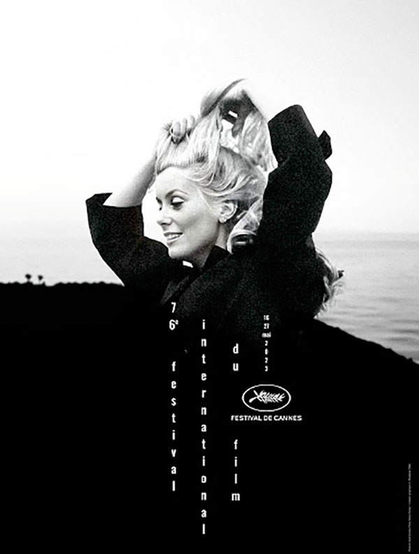 ملصق مهرجان كان السينمائى فى نسخته السادسة والسبعين يكرم الممثلة الفرنسية كاثرين دونوف. صمم البوستر ليونيل أفينيون وستيفان دى فيفيس. تُظهر الصورة كاثرين دونوف تقف على الشاطئ، لتصوير الدراما الرومانسية La Chamade عام 1968، المقتبسة من رواية فرانسواز ساجان.